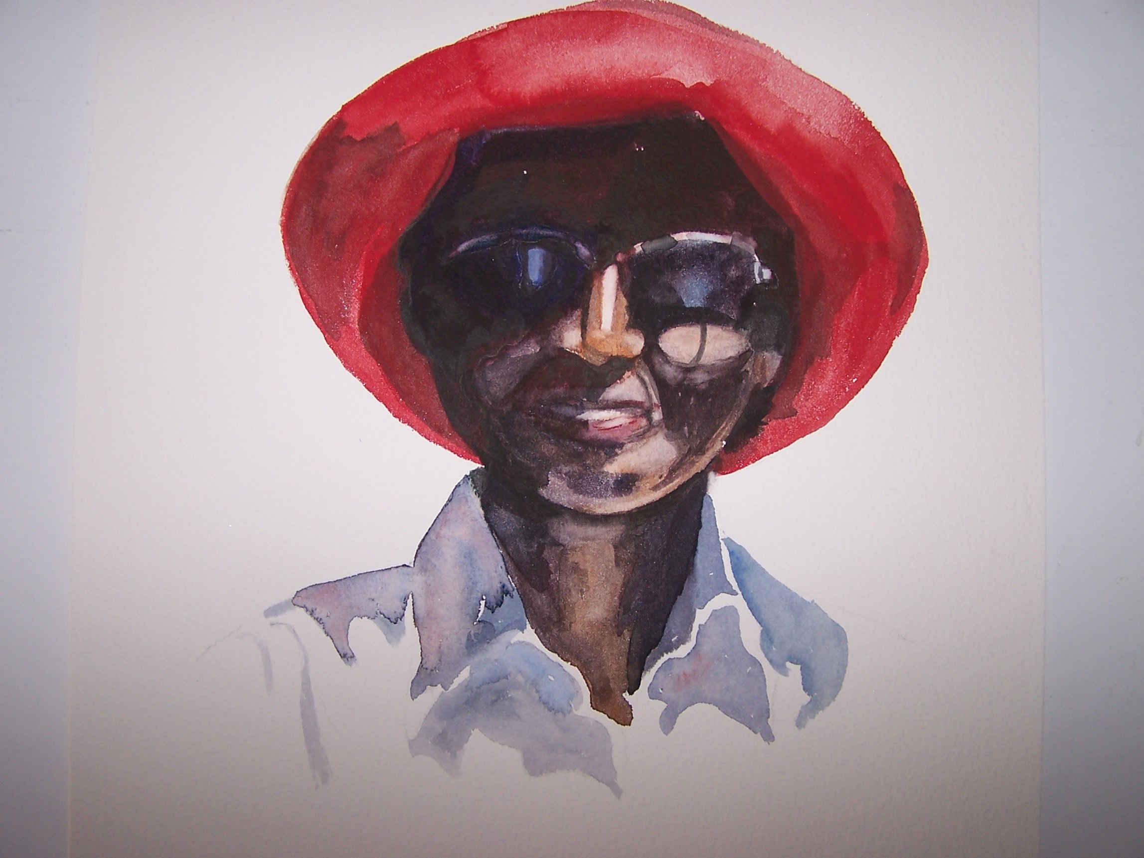 She was there at a regional Book Fair with her shy demeanor and her noticeable hat. I tried to take a photo without interrupting her but she was busy and moving about in the booth. Mustering some courage, I asked her to let me take her picture and she sat very still for a few seconds and looked directly at me … like this.